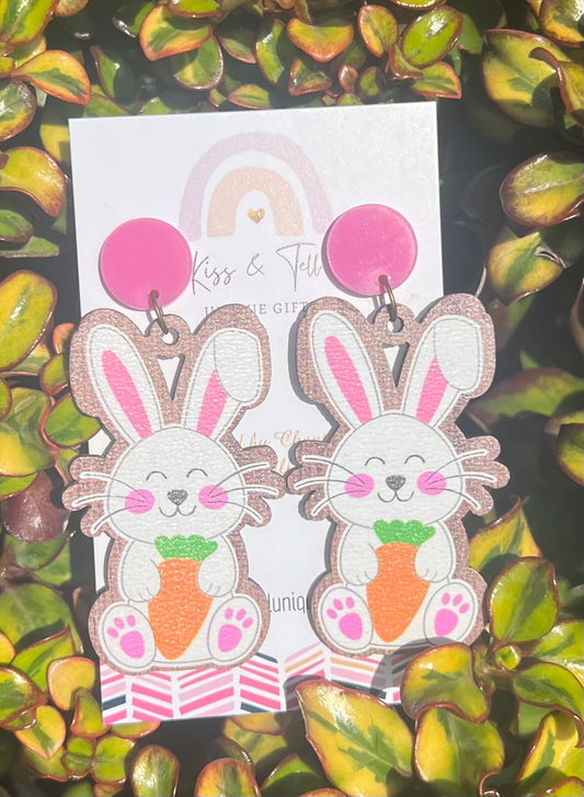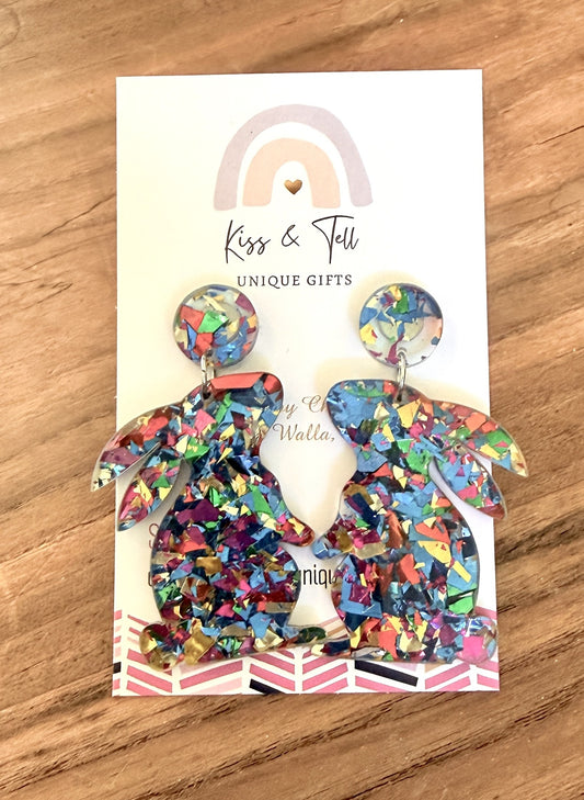 * 1 LEFT * Acrylic Glitter Easter Bunny Earrings