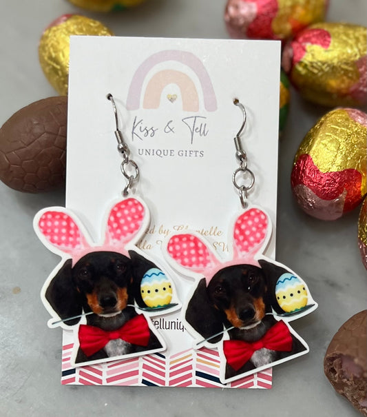 * SALE * Easter Dachshund Dangle Earrings